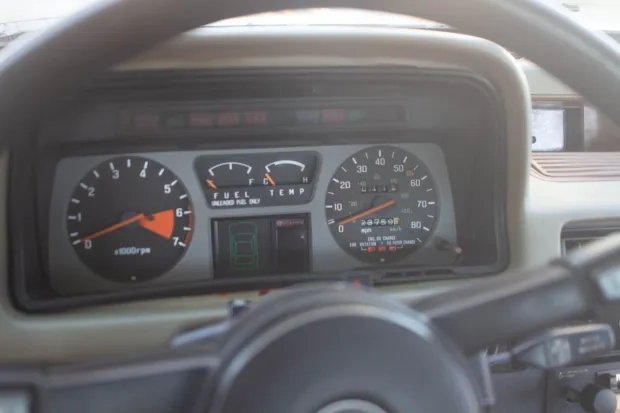 Inside the vehicle, one encounters fundamental features: cloth seats and a manual handbrake. Although it lacks modern conveniences such as air conditioning and power steering, this simplicity in design (contributes significantly to the car’s lightweight nature) and nimble handling. Steering, though devoid of power assistance, remains responsive, making it straightforward to maneuver in urban traffic. Safety features are minimal, reflecting the standards of the time; there are no airbags or advanced braking systems. However, the vehicle is equipped with seatbelts for all passengers. Despite its minimalistic safety features, the car’s design is robust and reliable, built to last. Infotainment and instrumentation are basic as well—drivers rely on analog gauges for essential information and the audio system is rudimentary, consisting of front speakers only. While the Accord Hatchback may appear under-equipped by today’s standards, it was designed with a focus on efficiency and affordability, appealing to practical buyers. The 1980 Honda Accord Hatchback became a popular choice for budget-conscious consumers because it offered a good balance of reliability, fuel economy and driving enjoyment.