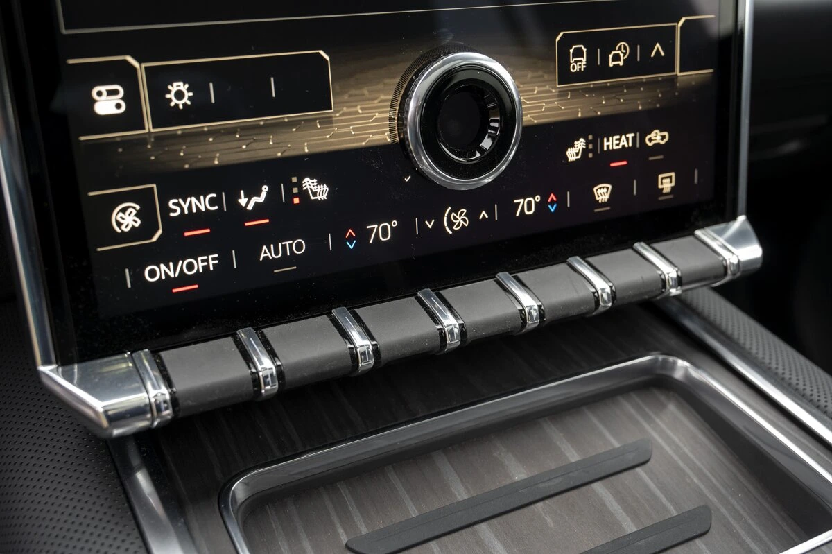 The interior is packed with technology, including a large infotainment screen, Super Cruise hands-free driving, and premium materials. Its innovative MidGate system extends the cargo bed for extra hauling space, enhancing practicality for work and adventure.