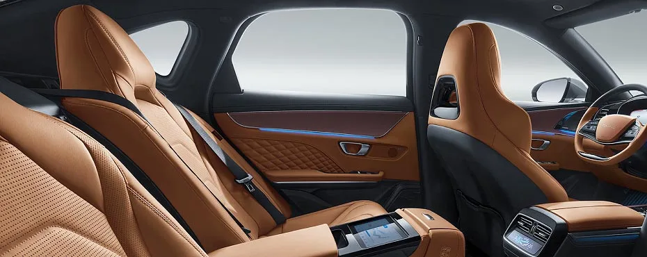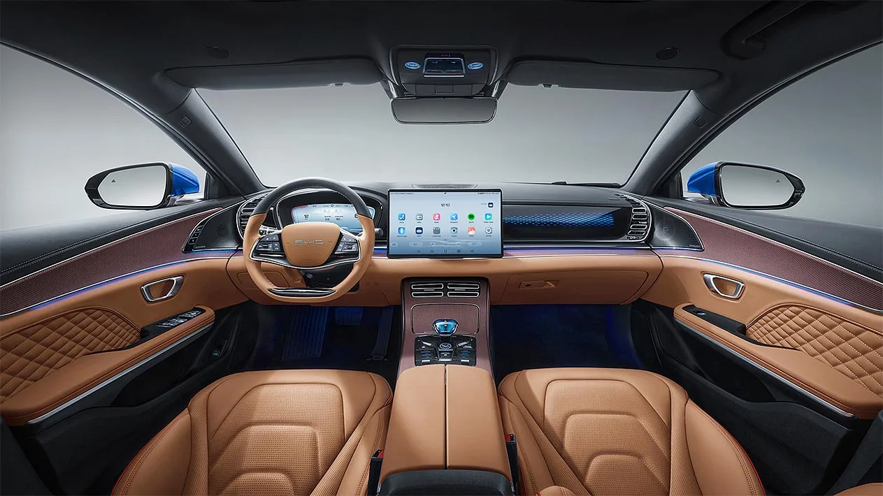 Inside, the BYD Han is full of the best materials and all its advanced features. There is an infotainment screen standing at 12.8 inches for smooth operations with its digital drivers information cluster always bringing essential metrics within arm’s reach. The cabin boasts premium leather seating, dual-zone climate control, and electronic controls to make it a pretty comfortable place for drivers and passengers. It further complements this with the push-start feature for that added measure of modern convenience.