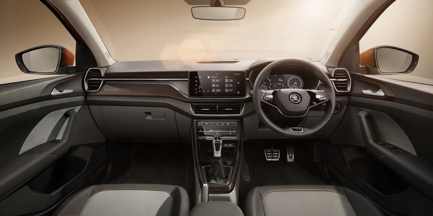 Under the hood is a 1.0L TSI three-cylinder, turbocharged engine churning out a decent 113 horsepower and an impressive 178 Nm of torque. This strike-and-balance between power and fuel efficiency makes it return an average fuel economy of almost 18 km/l. Equipped with a front-wheel drive and further provided with the choice of either 6-speed manual or 7-speed DSG automatic transmissions, the Kushaq delivers a far more silky, effortless feel whether you drive it in the heart of the city’s chaos or on long highway rides.